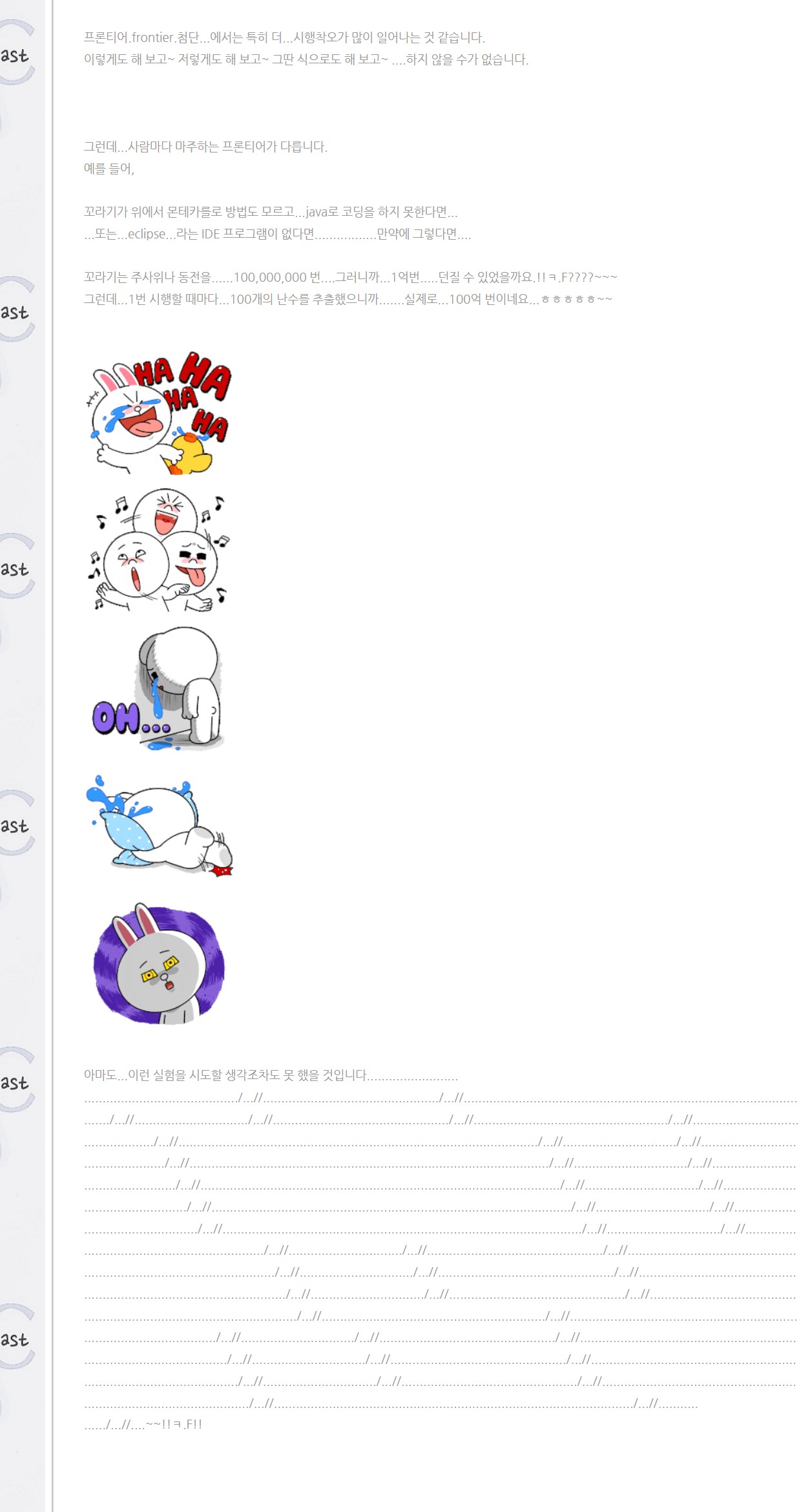 '분업'...에 관한 농담!인 것은 알겠는데...그런데....그게... 과연...잡아먹고, 팔아먹고, 부려먹고...밖에는 써먹을 다른 방도는 또 없을까요.!!ㅋ..ㅋ?????~~ 누군가...위의 세가지 말고... ...다른 용