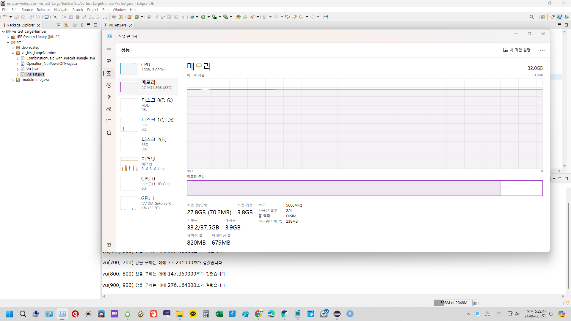 vu(100, 100) 값을 구하는 데에 0.333000초가 걸렸습니다.