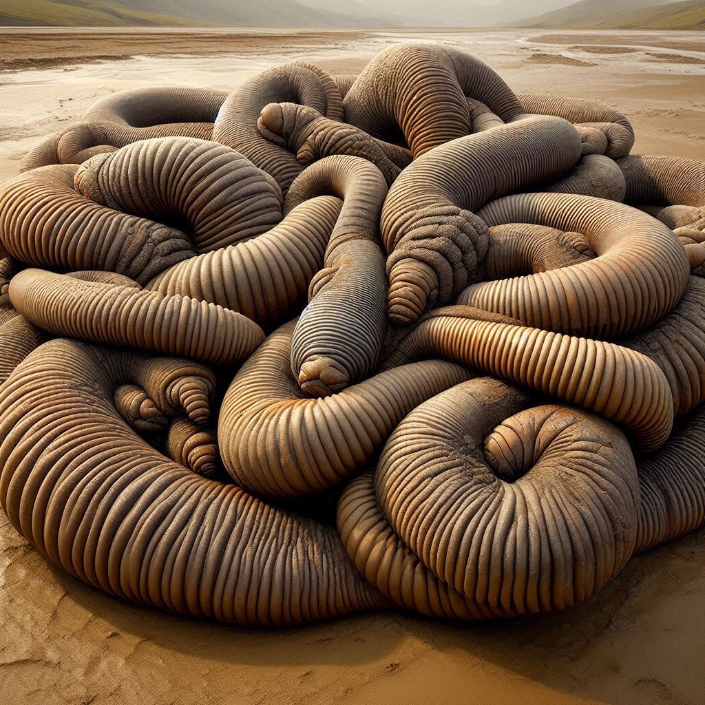query: 얽히고 설켜 있는 과거 지질시대의 여러 마리의 매우 많은 대왕찰거머리 군체... 1, 2, 3, 4