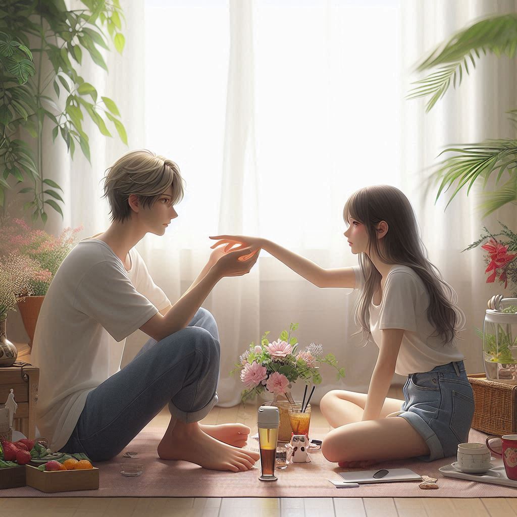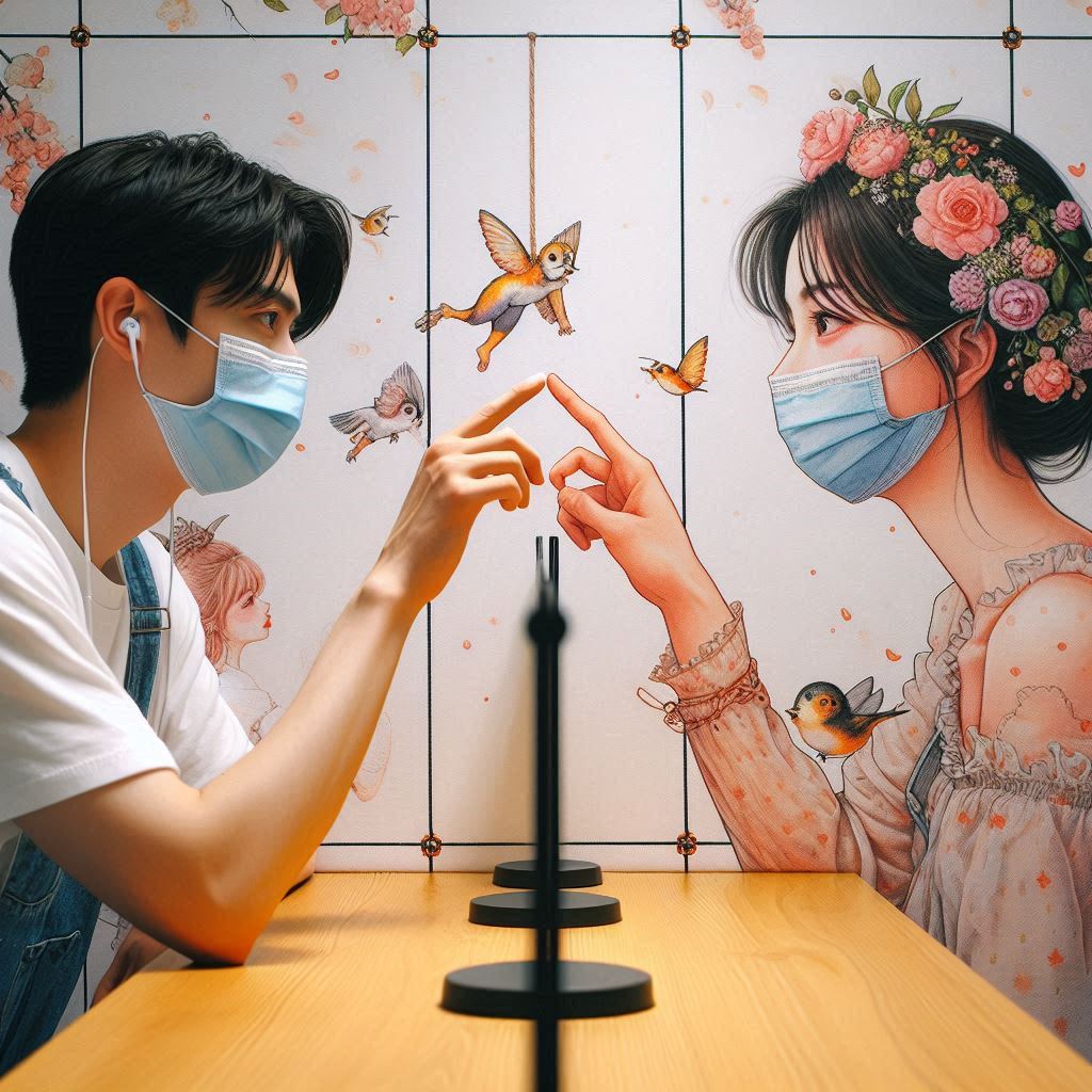 손을 뻗으면 서로 거의 닿을 듯 말 듯한 거리에서; 서로를 사랑.exe