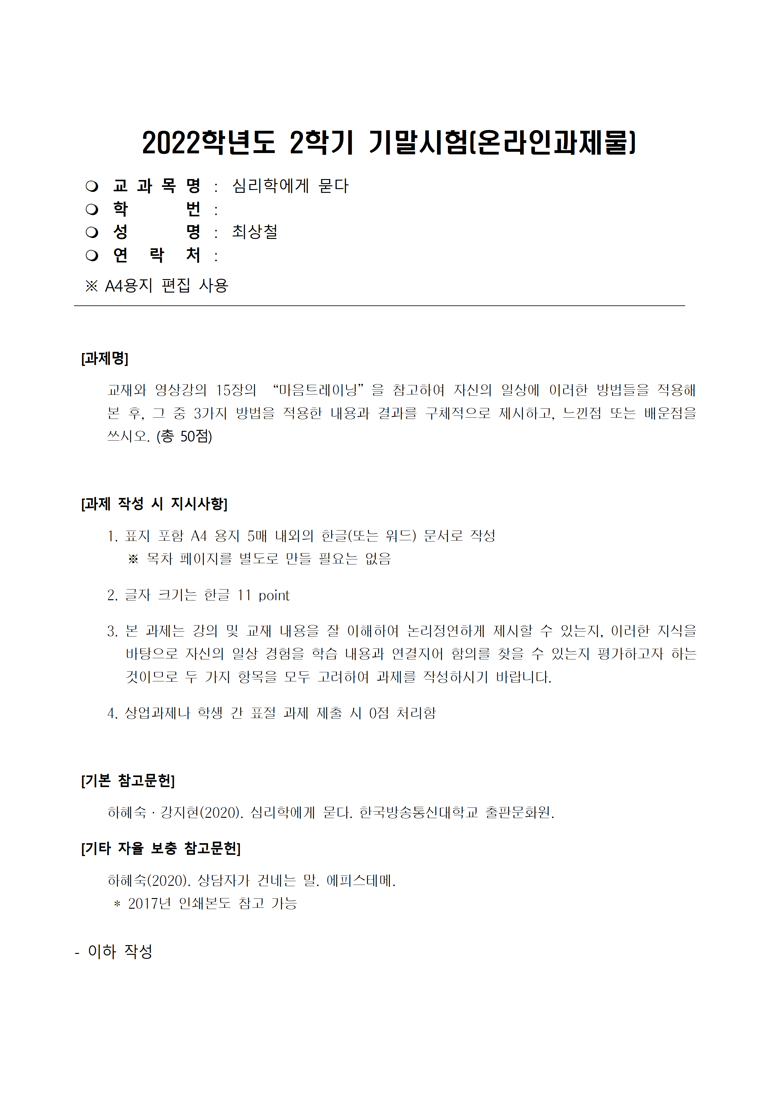 제목: 리포트(과제물) 마무리는...이딴식!으로.....들...하시던가~마시던가~~...각자각자들...알아서들......