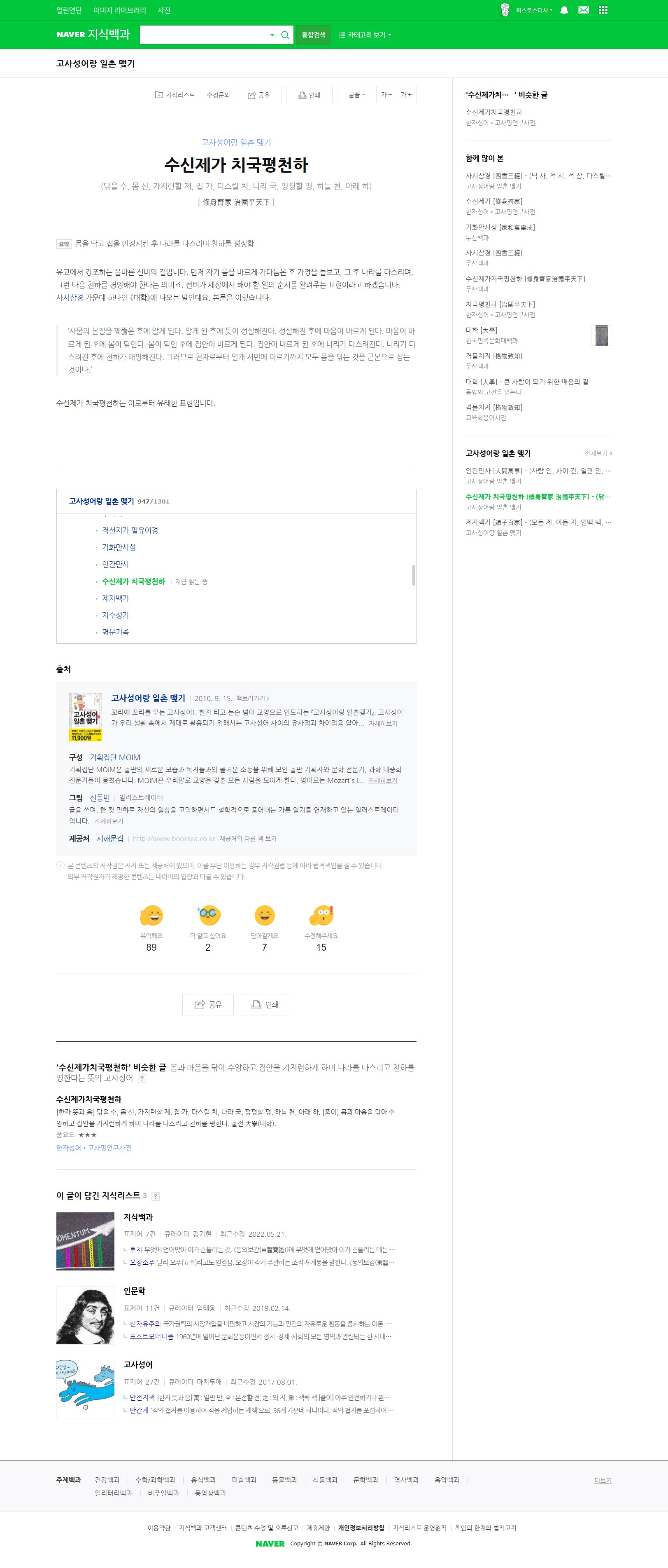 治國은...뭐...능력이 되거나...그것을 기를 여력이 되는 사람은...자기 분야에서...잘~하면 좋을 것이고~